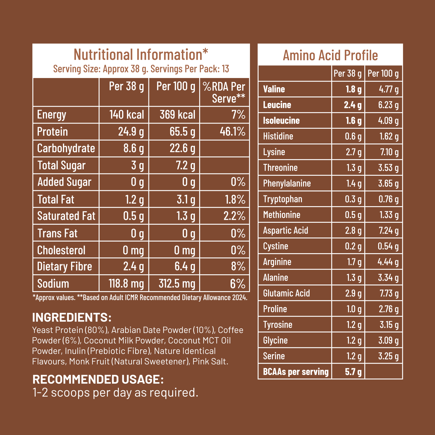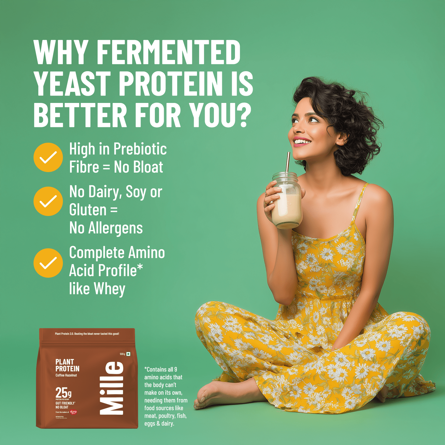 Yeast protein is a non-GMO, plant-based protein derived from nutritional yeast. Unlike whey, it’s dairy-free, super light & gentle on your gut. Unlike regular plant proteins, it has a smooth texture & a complete amino acid profile. Made by fermenting yeast, it absorbs better, doesn’t cause bloating & proves to be a clean, high-performance protein.