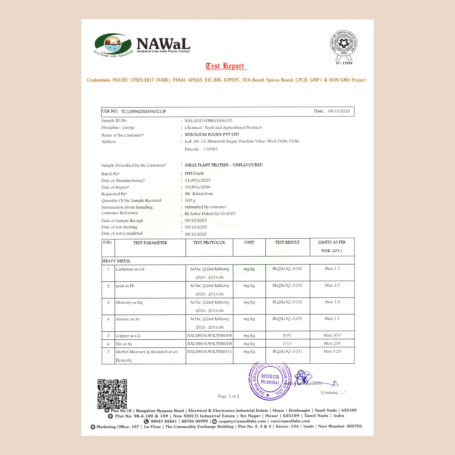 Does Mille’s Plant Protein 2.0 contain any potential allergens?